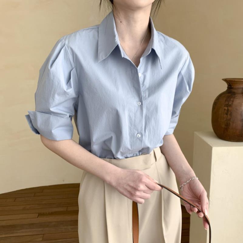 깔끔한 디자인 여자 상의 블라우스 셔츠 퍼프소매더 여름 봄 20대 30대 반팔 여성 정장룩 상의 탑 가을 간절기 커리어우먼 오피스룩 데일리룩 청순한 데일리 코디 올매치 캐주얼