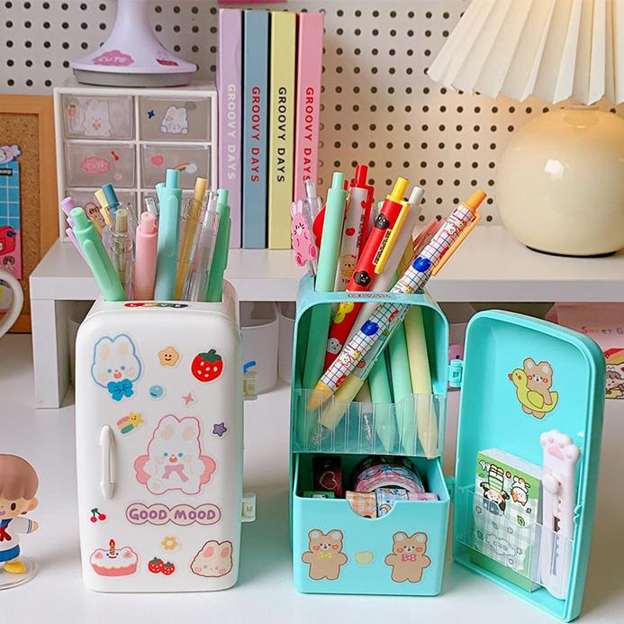 미니 냉장고 연필꽂이 - 책상 화장대 정리 귀여운 수납함 서랍 필기구 보관함 다용도꽂이 데스크소품