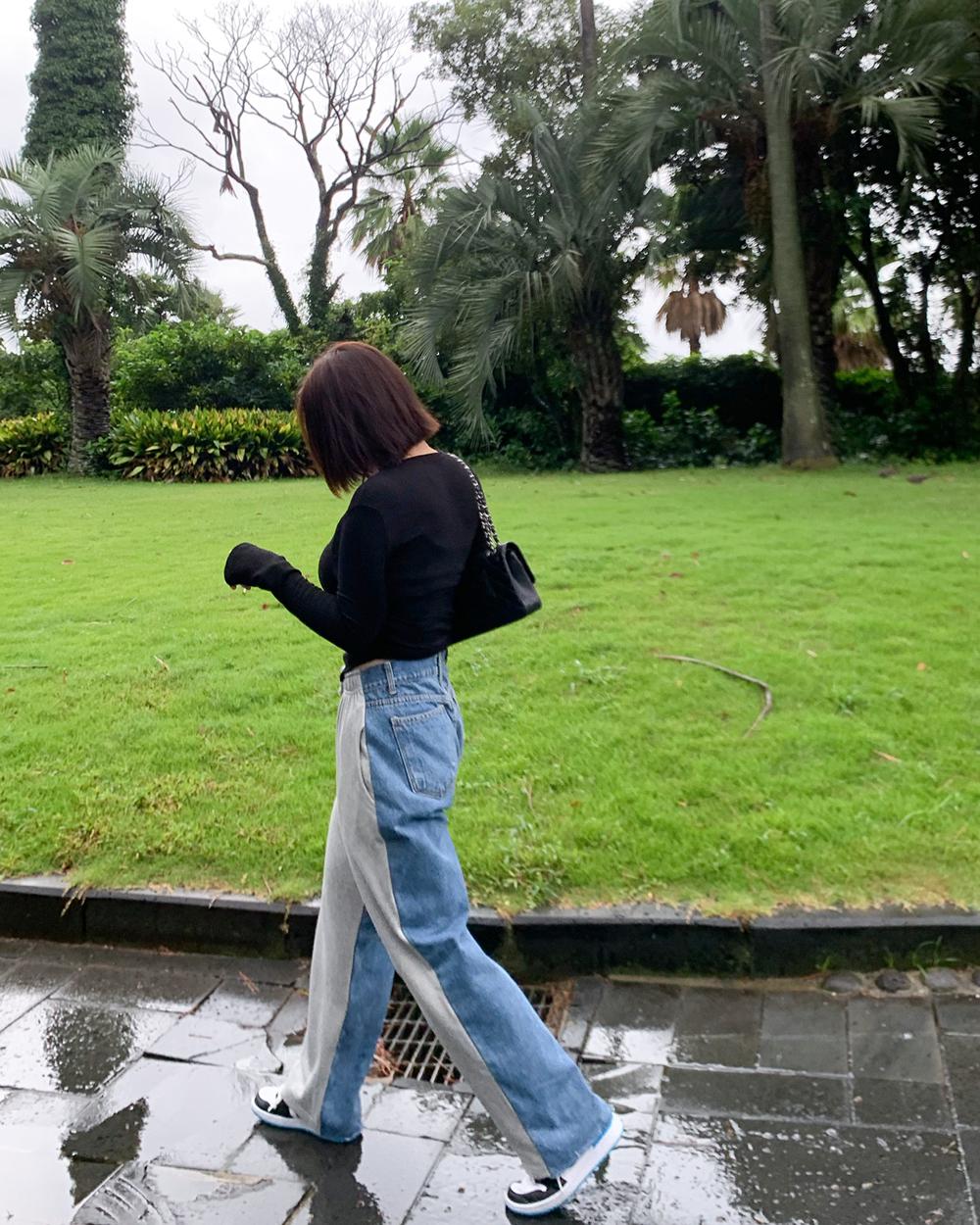 리턴 pt 남녀공용 남자 여자 쭈리 청바지 반반 하프 반전 데님 와이드 밴딩 팬츠