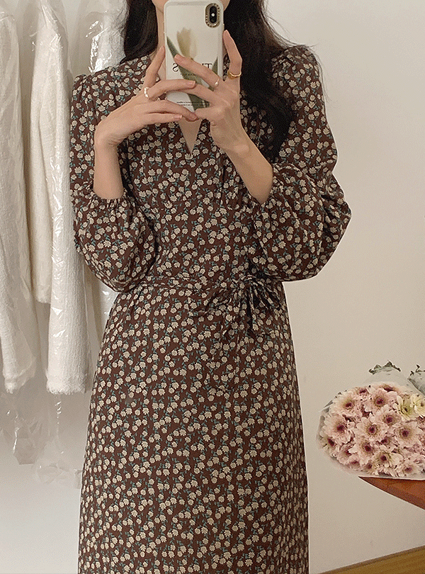 💛가을/하객룩💛루어스 플라워 쉬폰 브이넥 롱 원피스