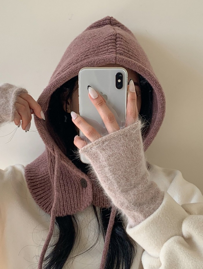 버튼 후드 골지 니트 남녀공용 바라클라바 6color