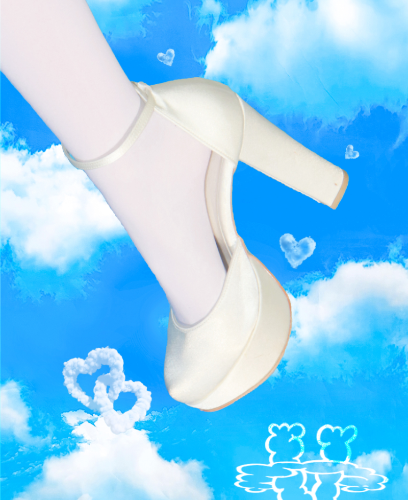 🤍로맨스판타지🤍 윈터페어리 실크 가보시 청키힐 (하이힐,웨딩힐,브라이덜샤워,공주,로맨틱,양산형,킬힐,하객룩,페어리계)