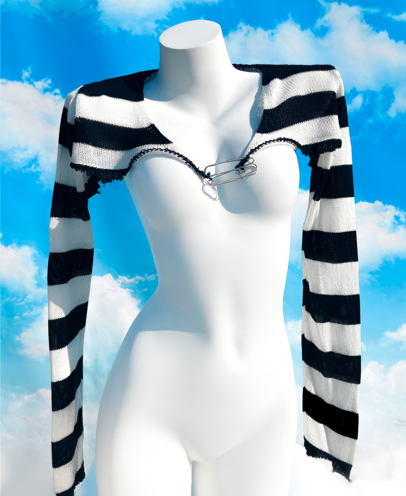 🦋마지막재고🦋 이모키드 스트라이프 크롭 니트 볼레로 (살안타가디건,썸머가디건,여름,살안타템,월디페,umf,워터밤,페스티벌룩,y2k,유니크,펑크룩,키치룩,코스프레,나나)