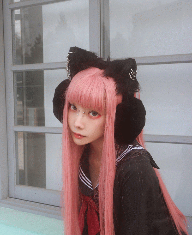 💝당일출고💖 고양이 체인 퍼귀마개 (y2k,펑크,털귀마개,접이식,유니크,하라주쿠,오타쿠,코스프레,지뢰계,귀도리,헤드셋,페어리계,고스,고딕)