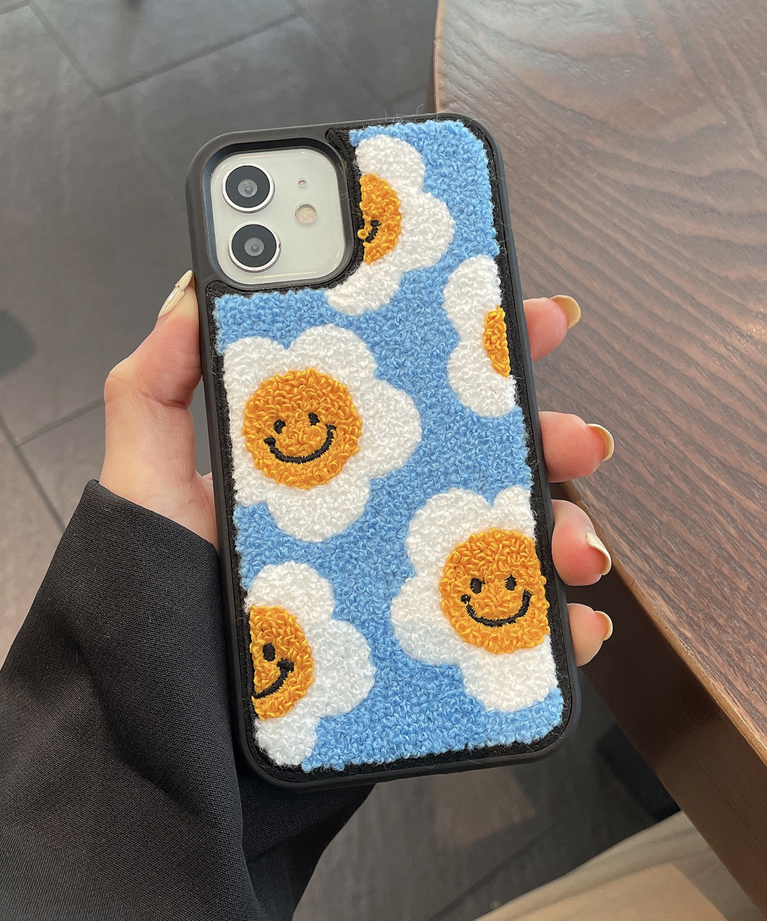 아이폰 블루 뽀글이 스마일 꽃 플라워 아이폰케이스 겨울 털 귀여운 유니크 친구 선물 우정 커플 핸드폰 휴대폰 애플 폰 케이스 X XR 11 PRO 12 프로 13 14 프로맥스