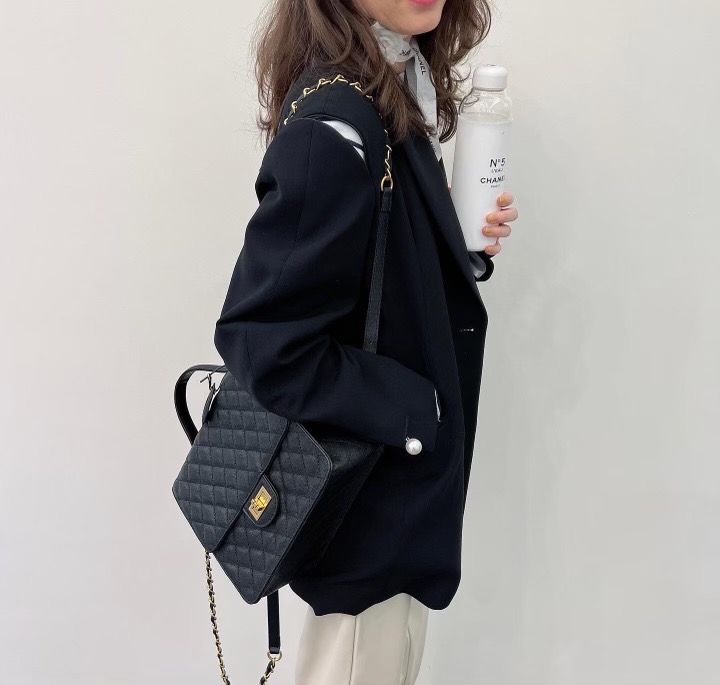 여성 소가죽 백팩 캐비어 소재 채인끈 사각미니 어깨가방