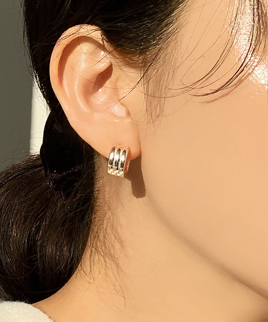 [무배] 실버925 미디움 세줄 라인 볼드 원터치 링 귀걸이