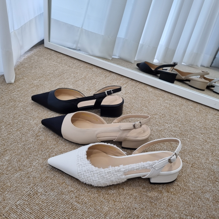 성수동수제화 앞코 배색 슬링백 미들굽 샌들 3cm