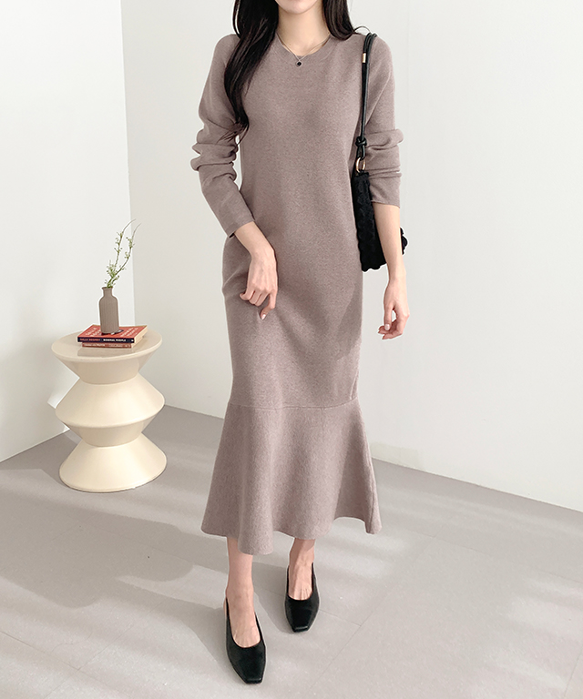 오스틴 세미 루즈 머메이드 봄 가을 겨울 하객 오피스 니트 롱 원피스 / 간절기 데일리룩 결혼식 출근룩 데이트룩 모임룩 나들이룩 꾸안꾸