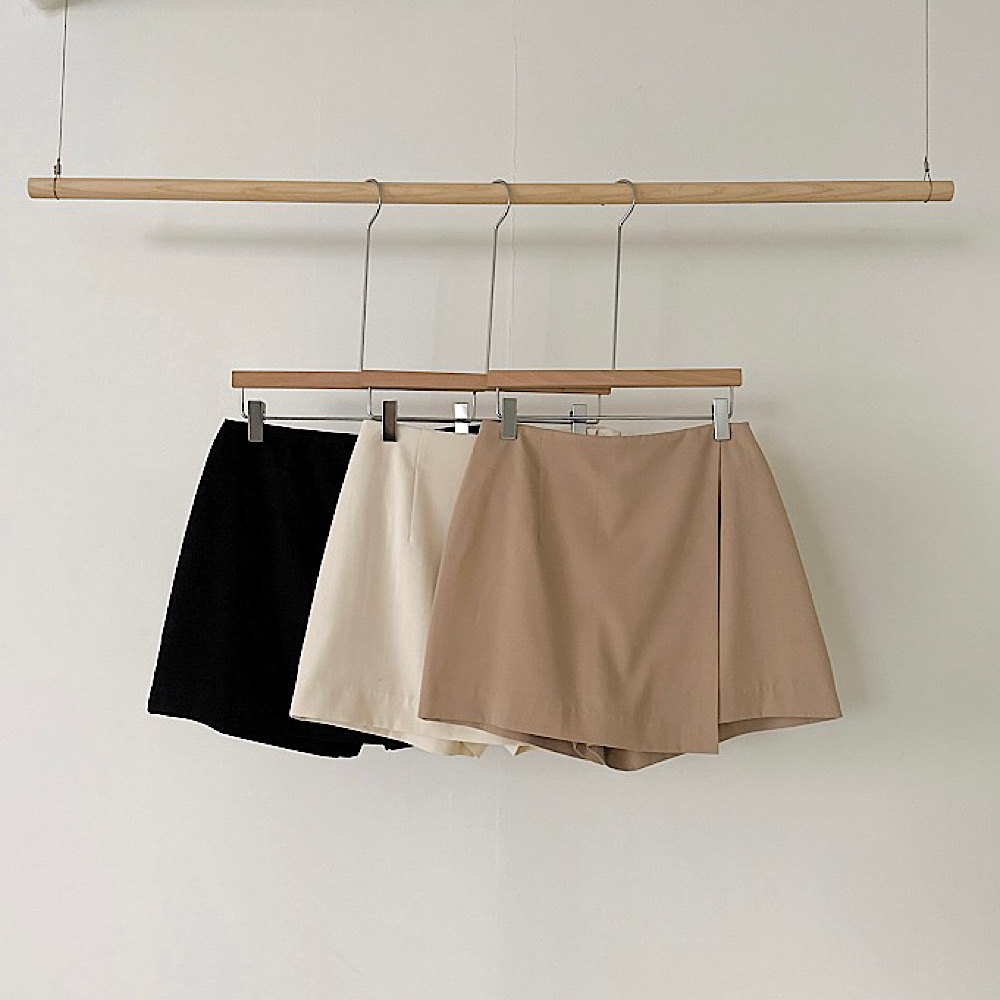 예쁜 여자 봄 하객룩 결혼식 큐롯 치마바지 캐주얼 베이지 검정 아이보리 정장 반바지 바지