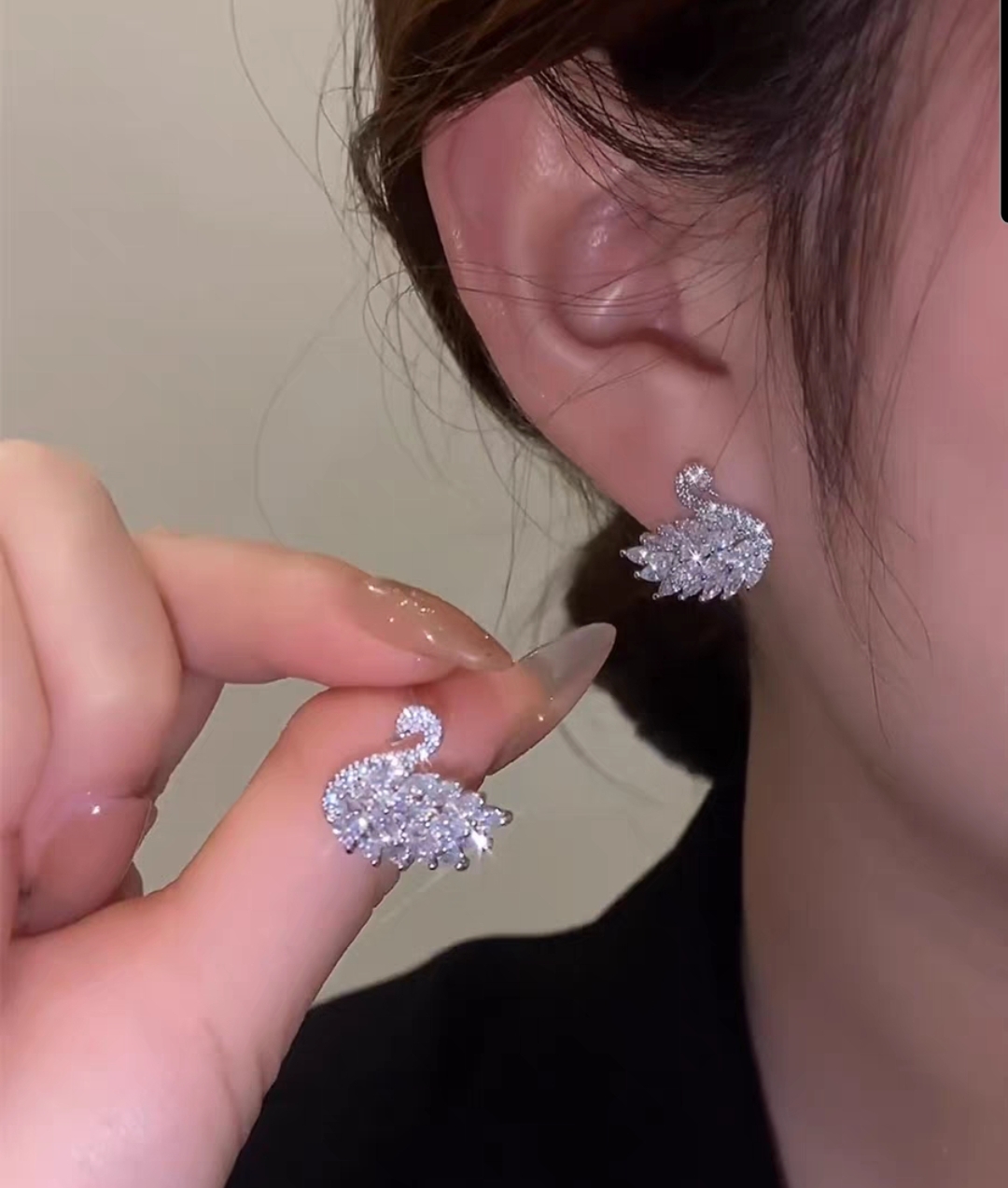(당일발송) 큐빅스완 흑조 백조 럭셔리 은침 귀걸이