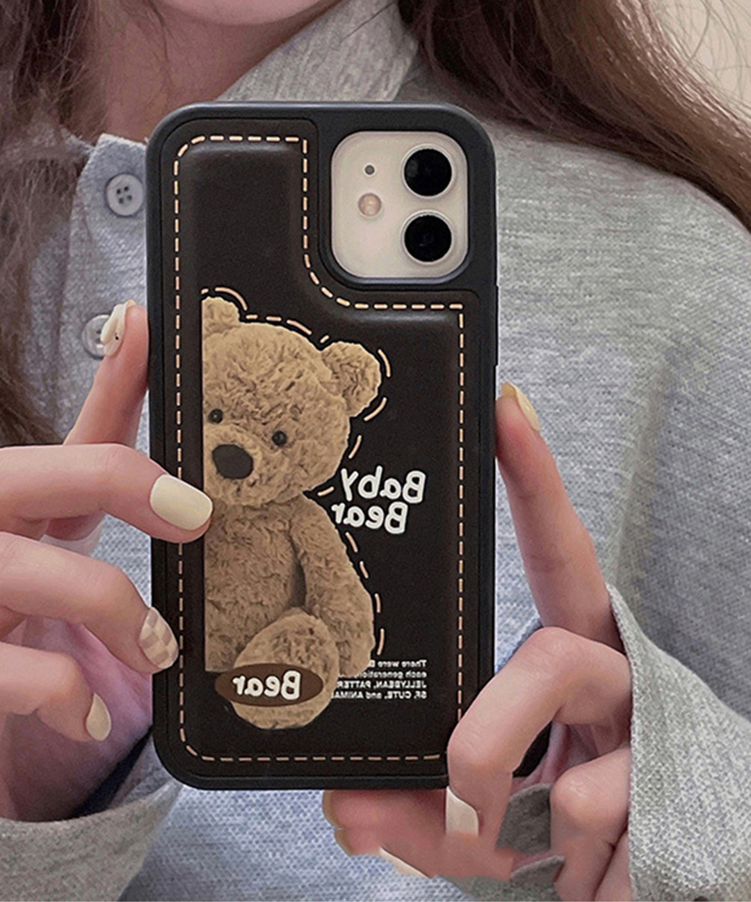 아이폰 빼꼼 곰인형 블랙 귀여운 곰 베어 유니크 하이틴 범퍼 가죽 커플 우정 애플 선물 생일 핸드폰 휴대폰 폰 케이스 아이폰케이스 X 11 프로 12 13 14 프로맥스