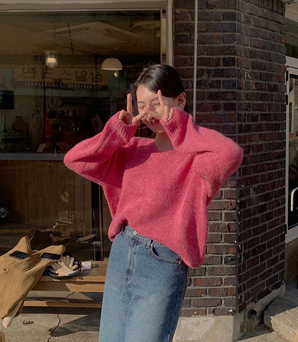 에떼르노 브이넥 루즈핏 캐주얼 울 알파카 니트(5colors)