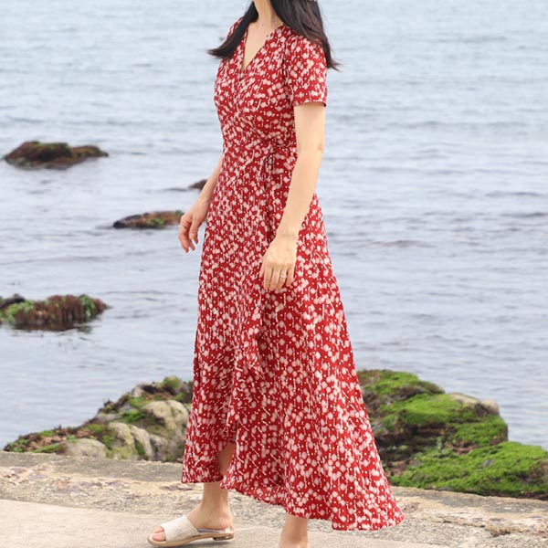 터치라인 세부 여름 여성 여자 브이넥 빅사이즈 휴양지 비치 랩 원피스