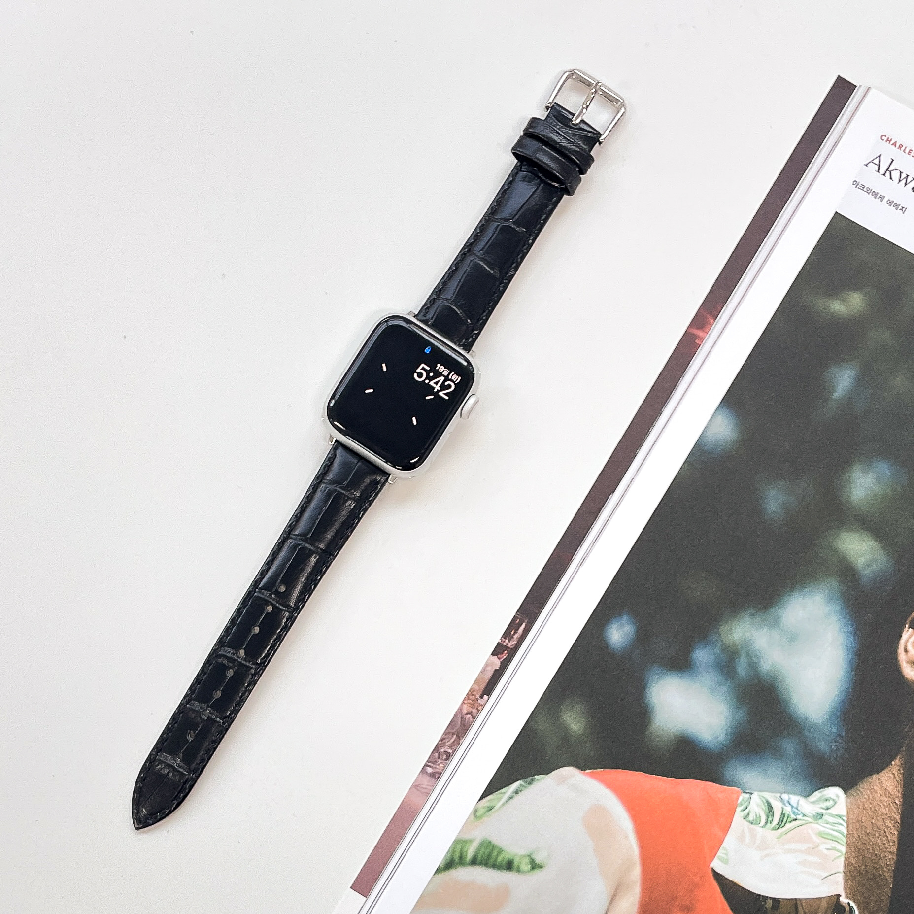[애플워치 악어 가죽 스트랩] 8 7 6 5 4 3 2 1 세대 울트라 se se2 메탈 미니 슬림 레더 커플 밴드 줄 줄질 시계줄 38mm 40mm 41mm 42mm 44mm