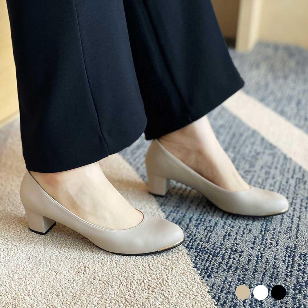 (225-265mm) 빅사이즈 여성구두 둥근 라운드코 골드엣지 미들굽 펌프스 5cm