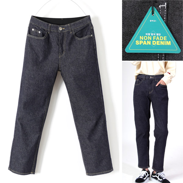 (S~3XL) 논페이드생지 데님스판 일자팬츠 생지일자진 플러스사이즈 빅사이즈여성청바지 흑청 진곤청 허리밴딩청바지