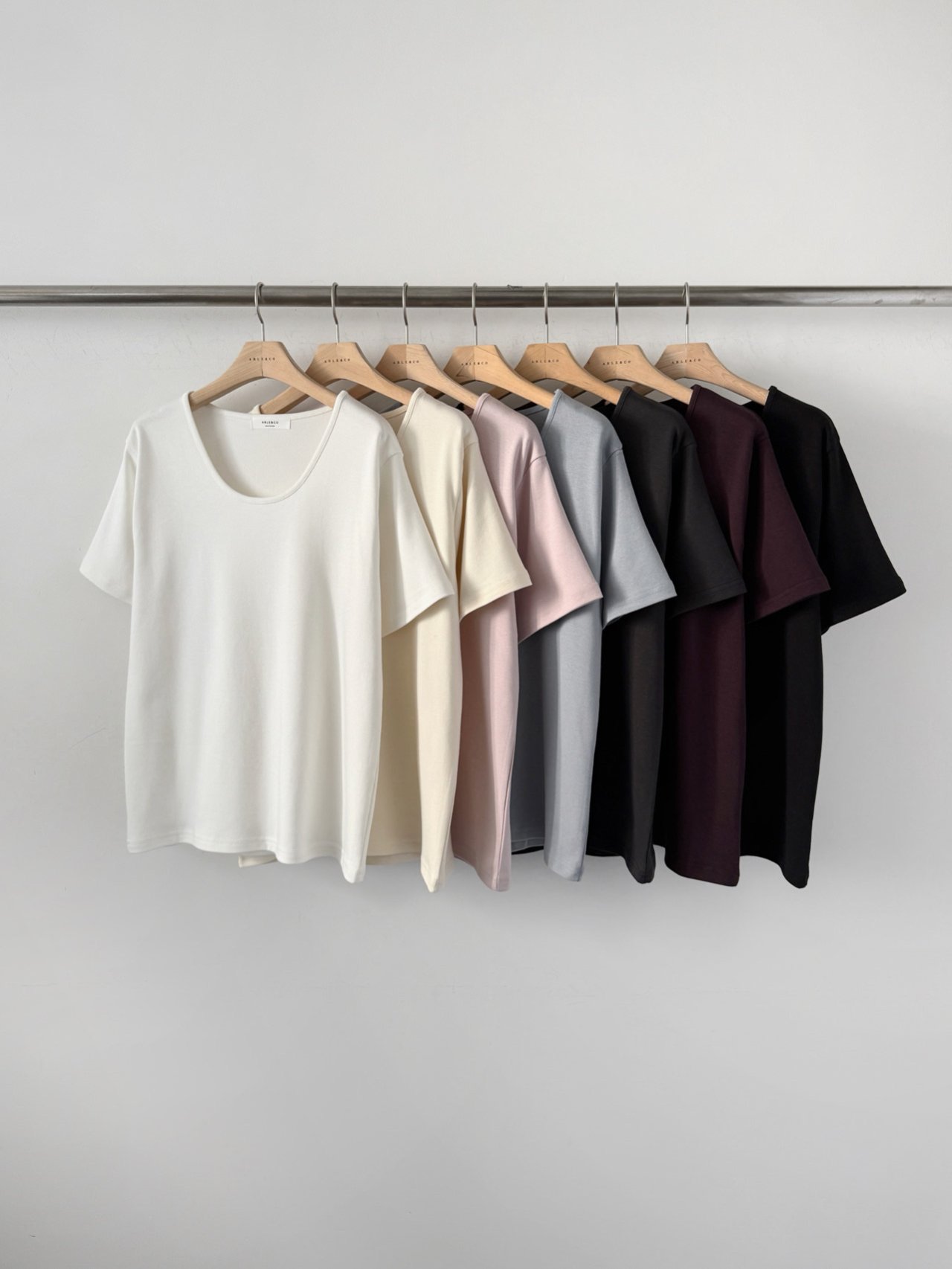 에이블앤코 기모 마들렌 유브이 반팔 여리핏 루즈핏 유넥 티셔츠 기모 겨울