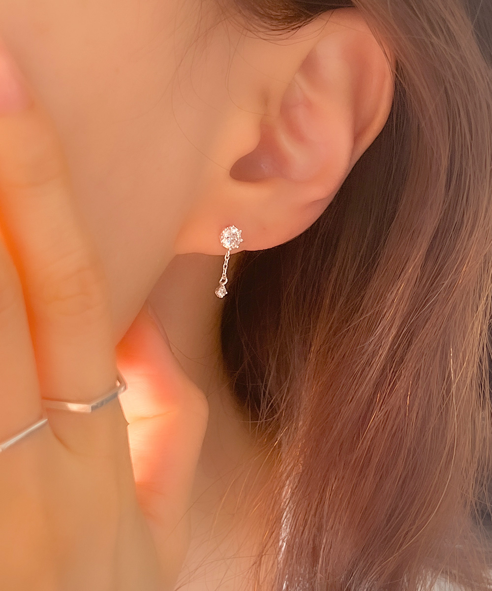 [무배] 실버925 큐빅 드롭 여리체인 귀걸이 (실버 로즈골드)