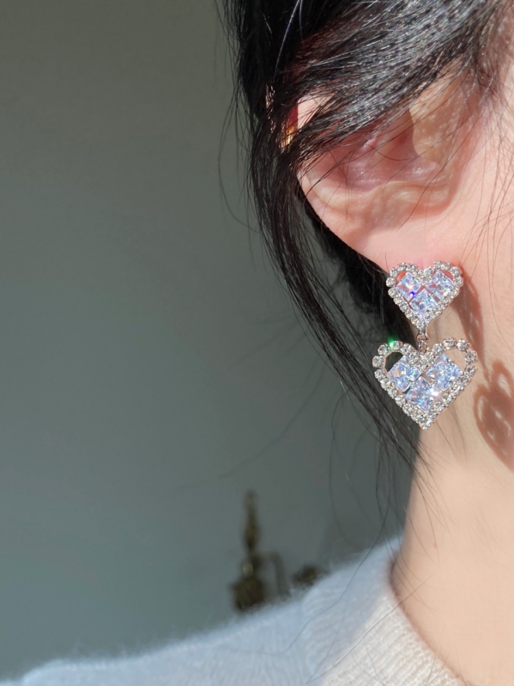 릴체 볼드 크리스탈 큐빅 하트귀걸이