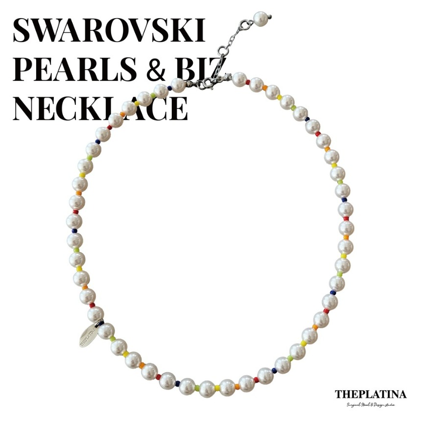 [theplatina]스와로브스키 진주 비즈 여자 남자 초커 써지컬 써지컬스틸 목걸이