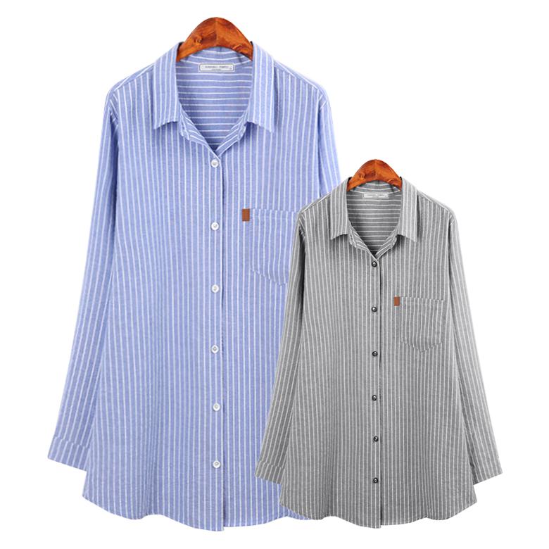 허밍퍼플 여성용 2894-포켓 카라 ST 남방 빅사이즈 세로 스트라이프 패턴 줄 포인트 베이직 슬림 오버 플러스사이즈 여성의류