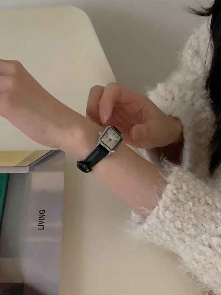 엔틱 사각 스퀘어 블랙 실버 가죽 시계