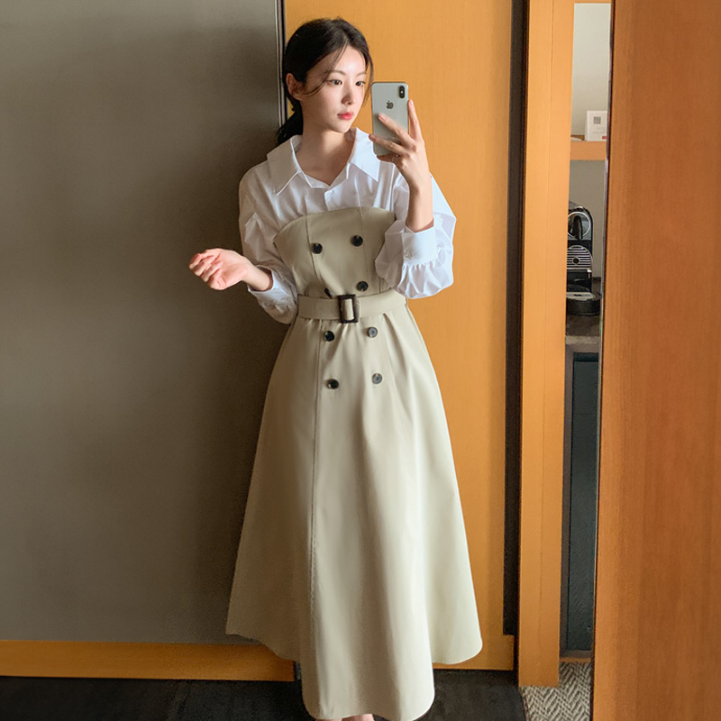 (MADE)주문폭주 [단독진행] 옴브레 트렌치 배색 벨트 원피스 op14991