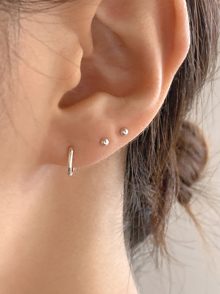 실버 데일리 링 2mm 은볼 큐빅 귀걸이 세트