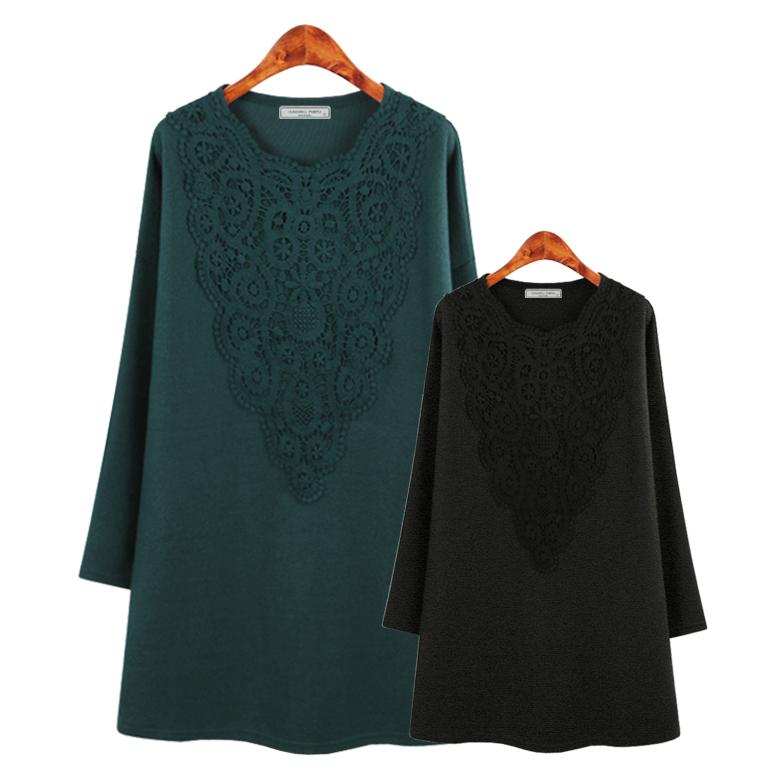 허밍퍼플 여성용 2721-켄지 레이스 모티브 빅사이즈 겨울 따뜻한 블라우스 중년 여자 엄마 옷 겨울 미시옷 니트 여성의류