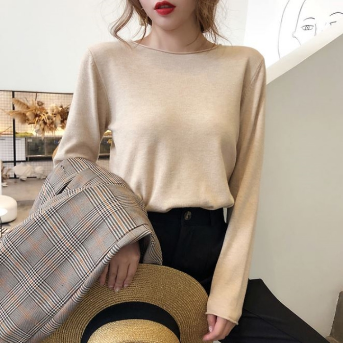 [당일배송/6컬러] 더미 립넥 청순핏 입술넥 보트넥 라운드넥 보들 여자 무지니트