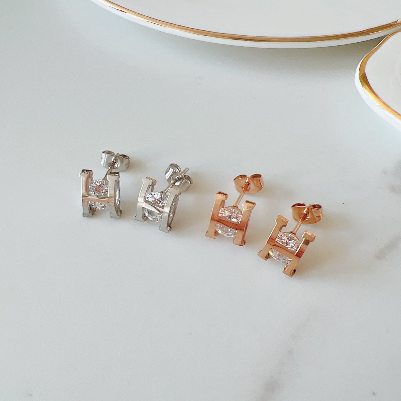 써지컬스틸 영문 팬던트 큐빅 귀걸이