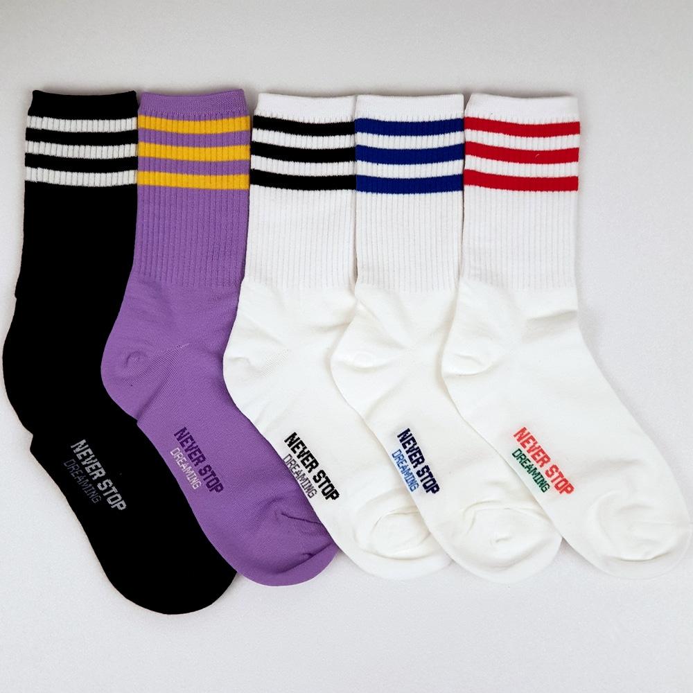 에트나 남녀공용 오버핏 삼선 면 장목 양말 5color