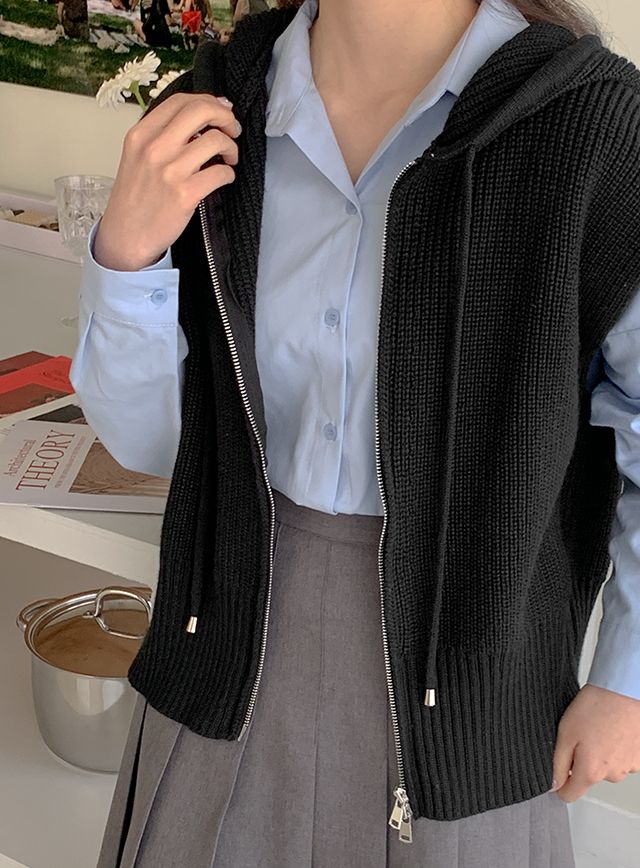 센샤 리사이클 니트 후드 집업 베스트 68979