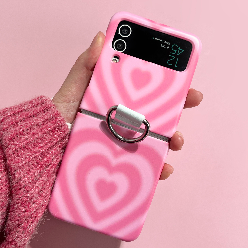 (무광-Z플립3/Z플립4) 하트 그라데이션 핑크 캐치링SET . 삼성 갤럭시 Z플립 지플립 제트플립 6 5 4 3 무광 하드 커플 친구 귀여운 캐릭터 디자인 선물 핸드폰케이스