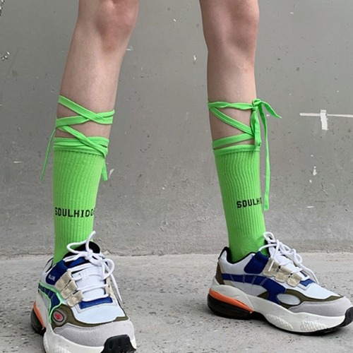 스트랩 레터링 양말 패션 네온 형광 양말 끈달린 레깅스 하이 니삭스 종아리 무릎 유니크 캐주얼 특이한 양말코디 긴양말 반스타킹 반타이즈 장목 긴목 양말 인싸템 헬스 스포치 테니스 러닝 요가 필라테스
