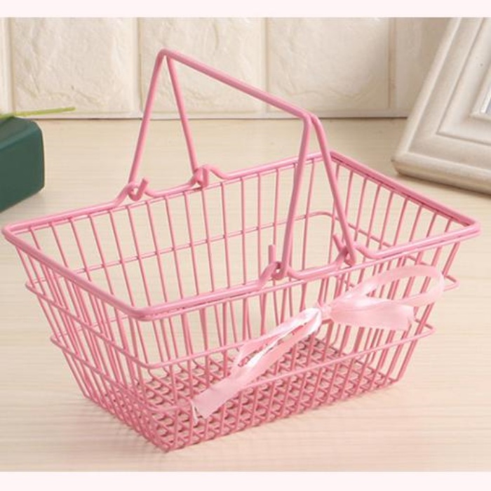 빈티지 핑크 철제 바스켓 바구니 - 예쁜 수납 소품 정리 리본 핑크바구니 핑크소품 화장품바구니 핑크덕후