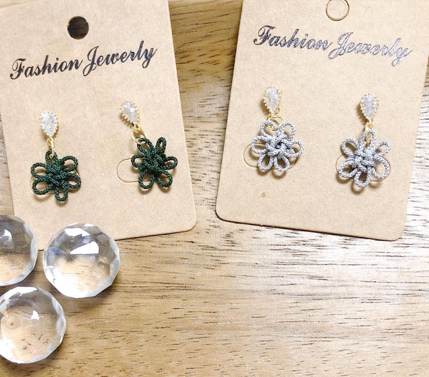 핸드메이드 벚꽃 전통매듭 은침 귀걸이