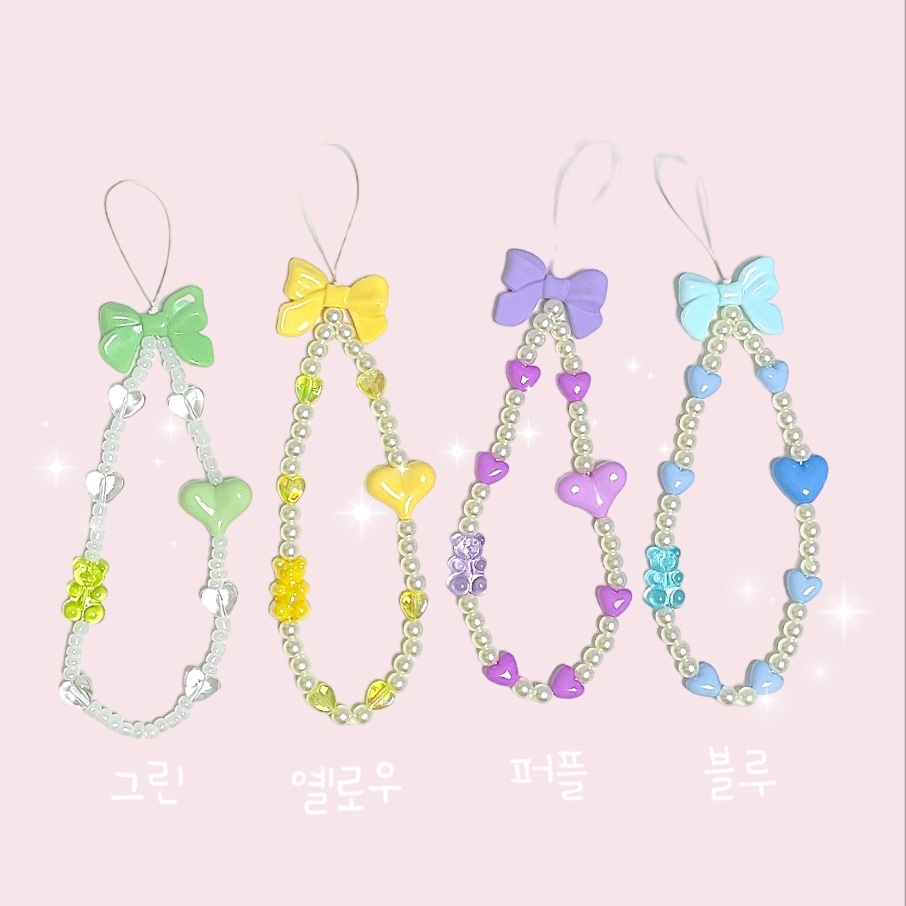 리본 하트 베어 핸드폰 스트랩 핸드폰줄 키링
