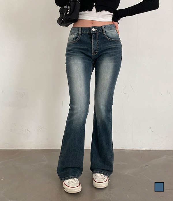 [무료배송] 슬림한 핏, 은은한 워싱 로우라이즈 부츠컷 데님 팬츠