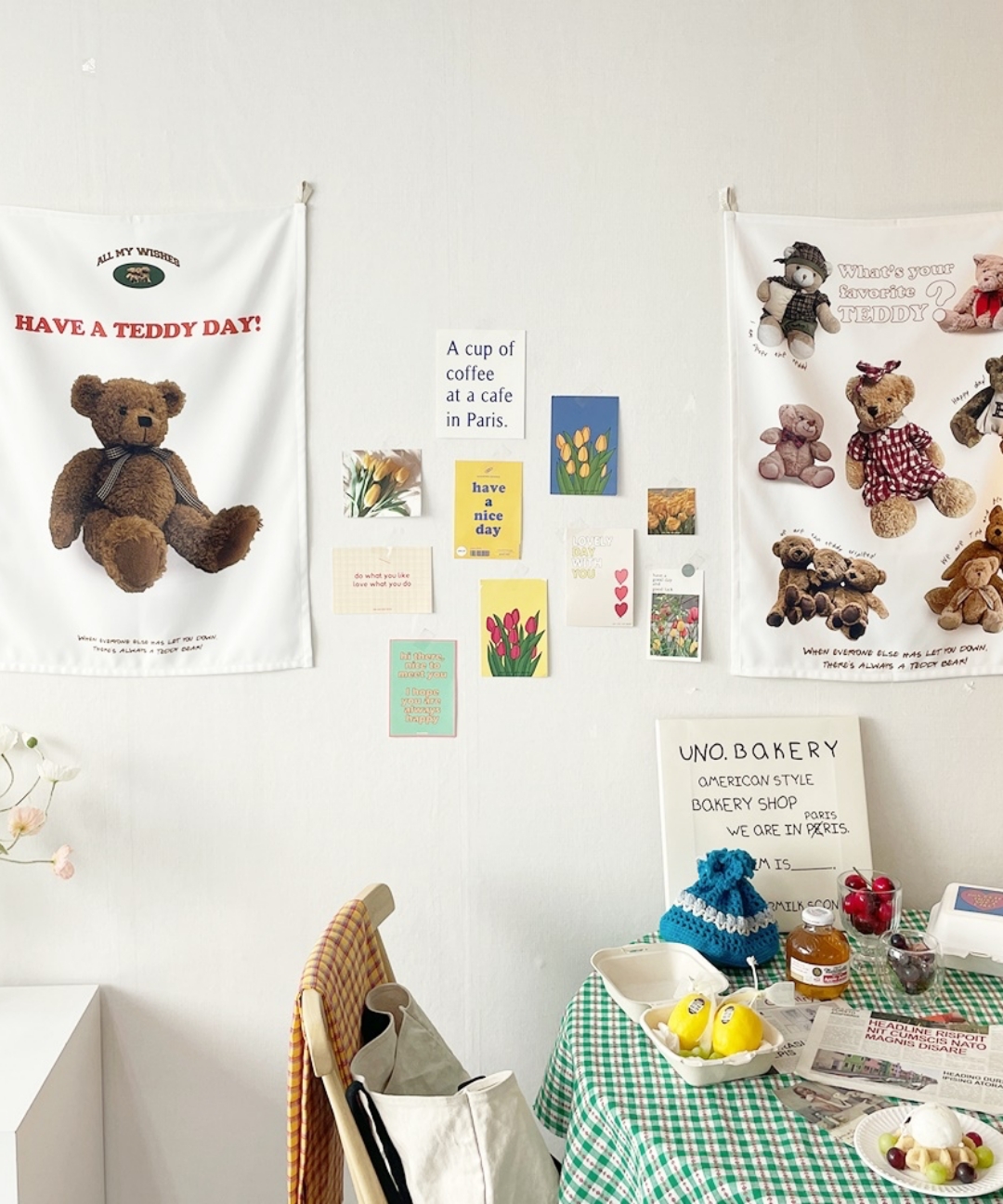 키치 대형 곰돌이 고양이 패브릭포스터 3type [인테리어 패브릭 곰 행잉 가리개 가림막 천 벽 장식 하이틴 방꾸미기]