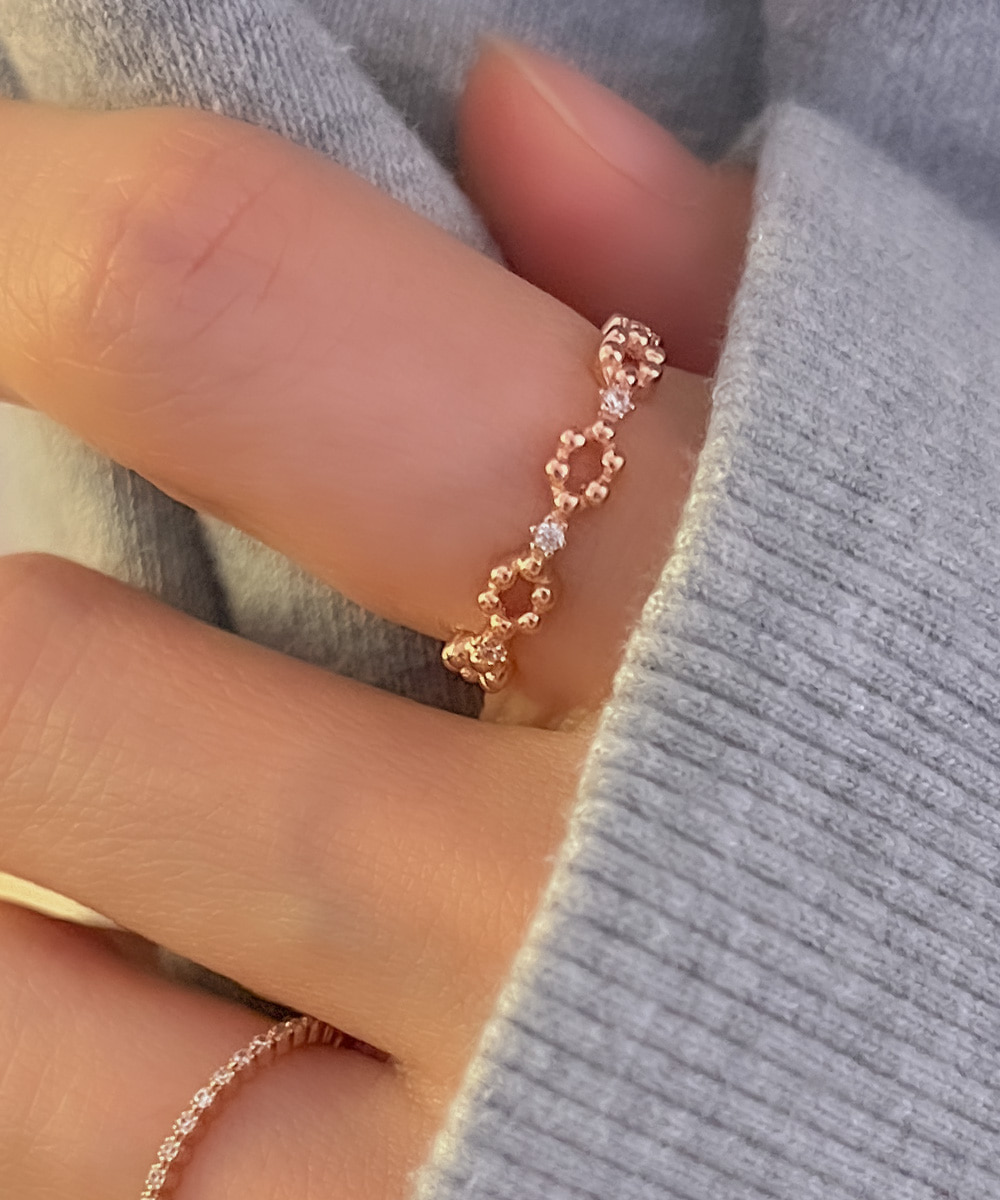 [무배] 실버925 큐빅 버블 타원 레이어드 반지 (실버 로즈골드)