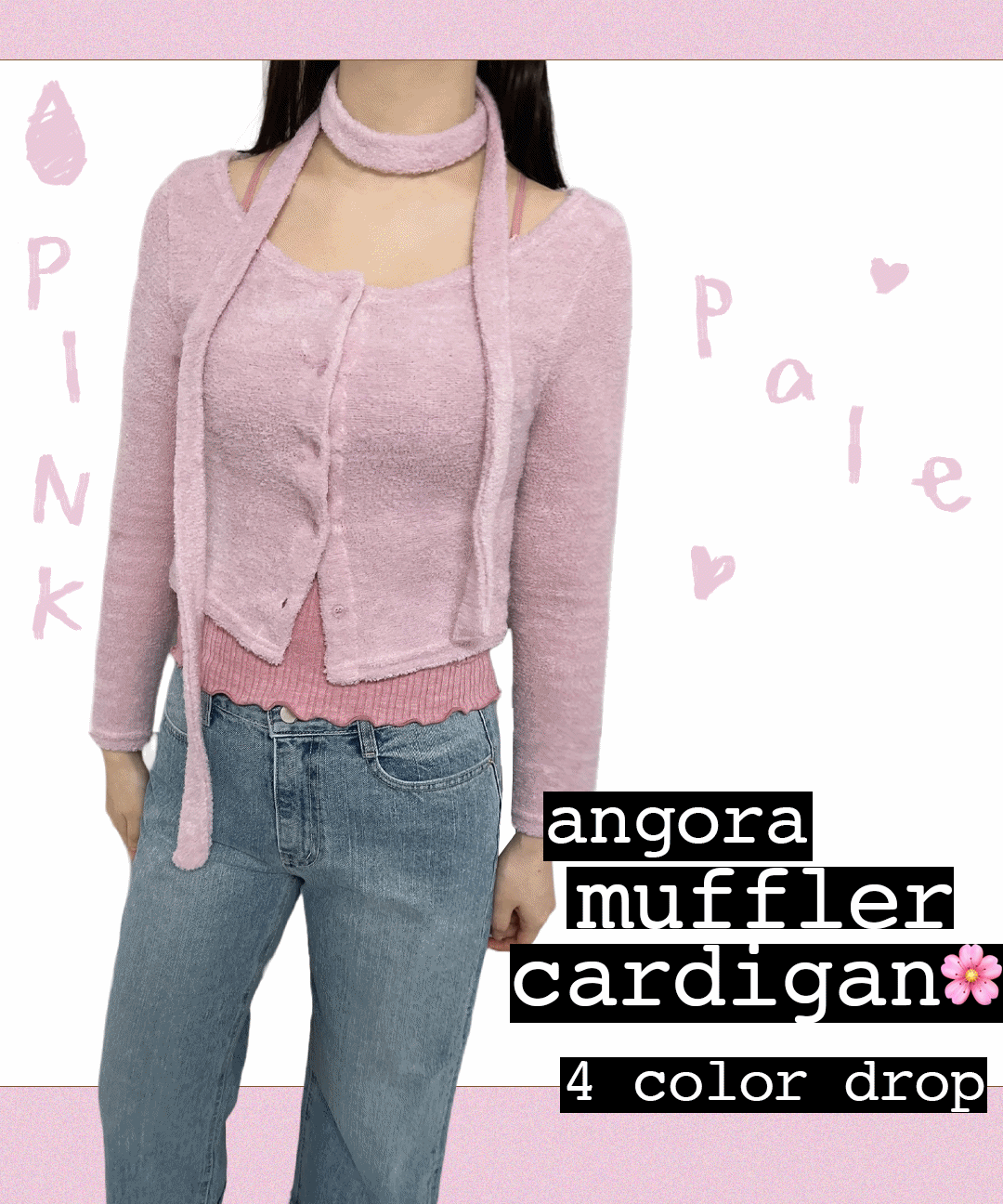 [여쿨/여쿨라] 앙고라 머플러 니트가디건 ⑉♥ 4 color / 봄가디건 봄신상 핑크 소라 니트 크롭가디건 머플러세트