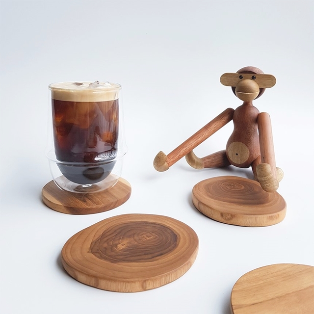 티크 우드 코스터 원목 나무 컵받침 원형 홀더 홈카페 디퓨져 캔들 받침대