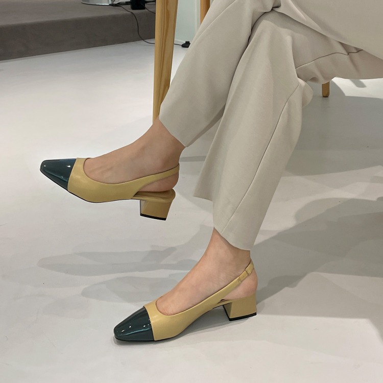 쥬베토 소가죽 2type 세미스퀘어 슬링백 & 펌프스 4cm
