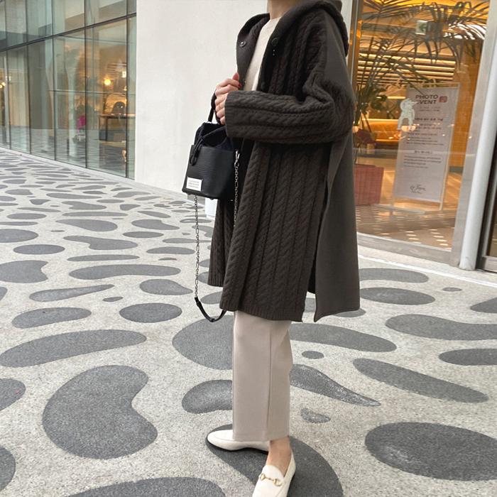 올내츄럴 옆트임 여성후드코트 롱 여자코트코디
