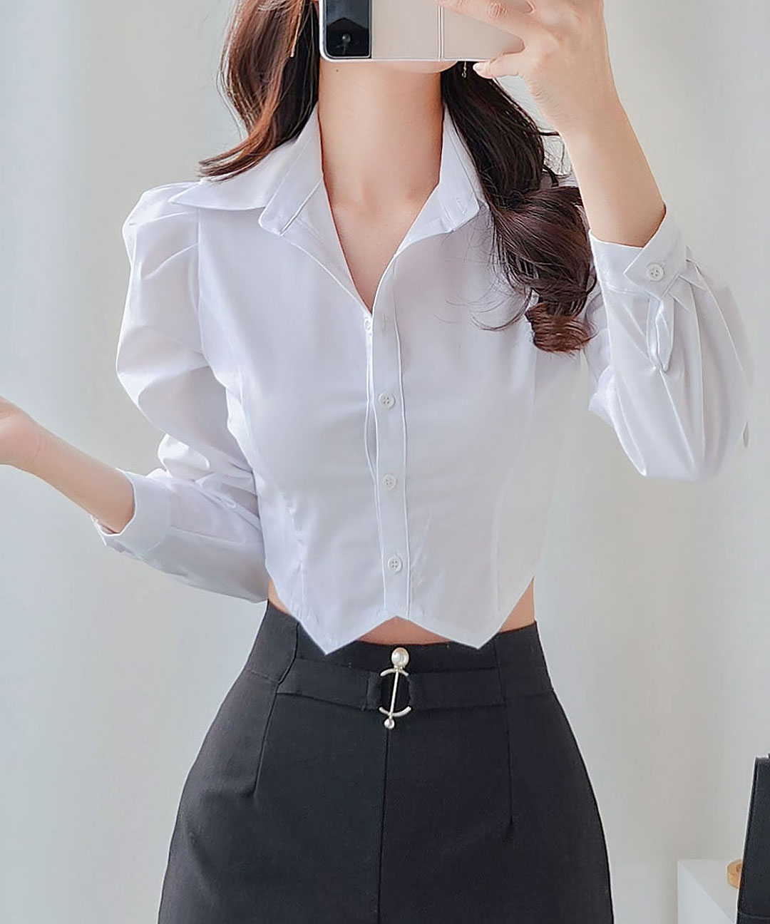 [봄신상/2color] 크롭 퍼프소매 셔링 카라 셔츠 블라우스 비숍