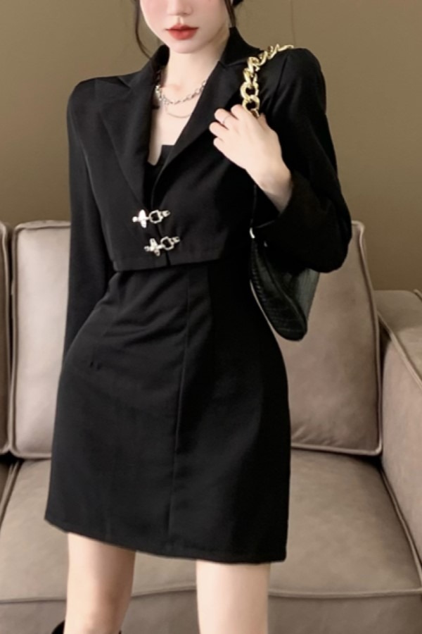 set 금속 버플 긴팔 롱슬리브 숏 자켓 나시 정장 미니 원피스 투피스 세트