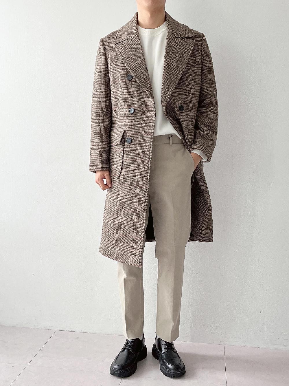 정장 코트 체크무늬 울 체크 모직 롱코트 겨울 캐주얼정장 코트 캐주얼 신입사원 정장 코트 체크무늬 남친룩 남자 회사원 체크무늬 코트 밤색 갈색 영국체크