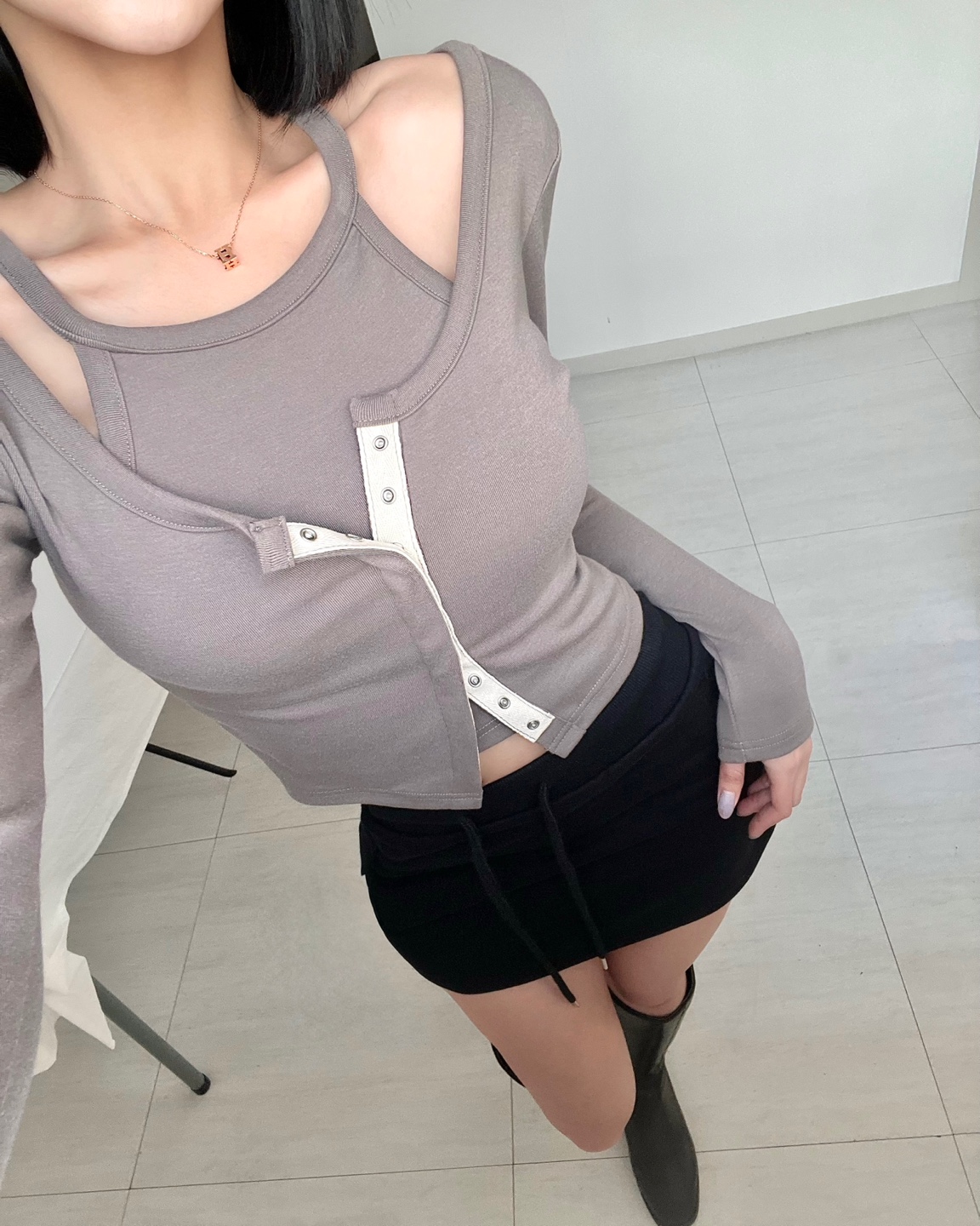 #여리섹시 [*당일배송*/*무료배송*] 홀터넥 버튼 가디건 세트 (3color) 유니크한티셔츠 나시가디건세트 슬림핏가디건 독특한티셔츠 스판티셔츠 몸매보정